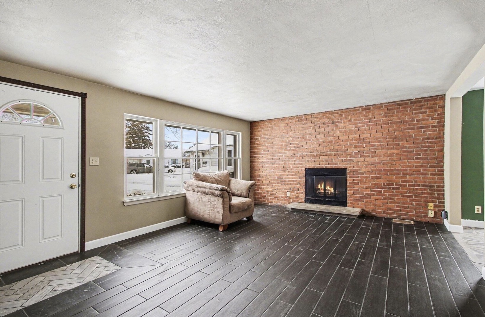 Enjoy relaxing evenings in the inviting living room featuring a classic brick fireplace, along with comfortable bedrooms and a functional layout perfect for everyday living. A two-car garage plus an additional storage shed provide plenty of space for vehicles, tools, and hobbies.