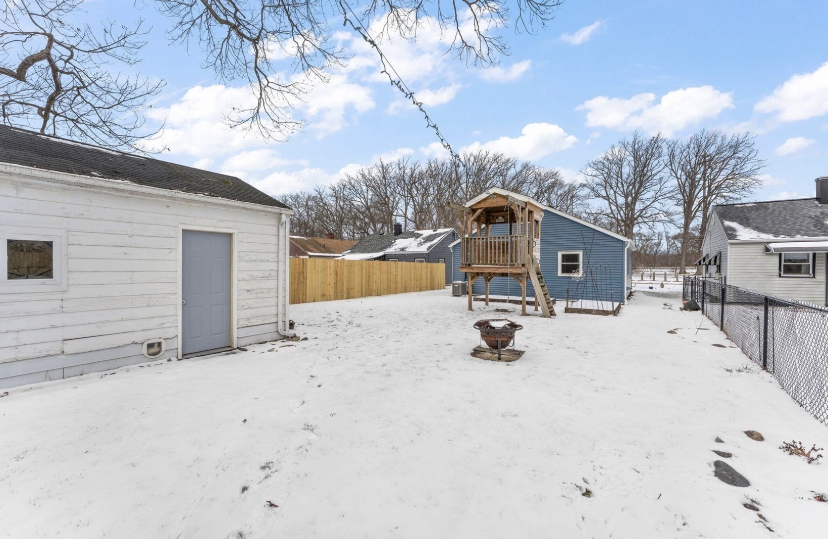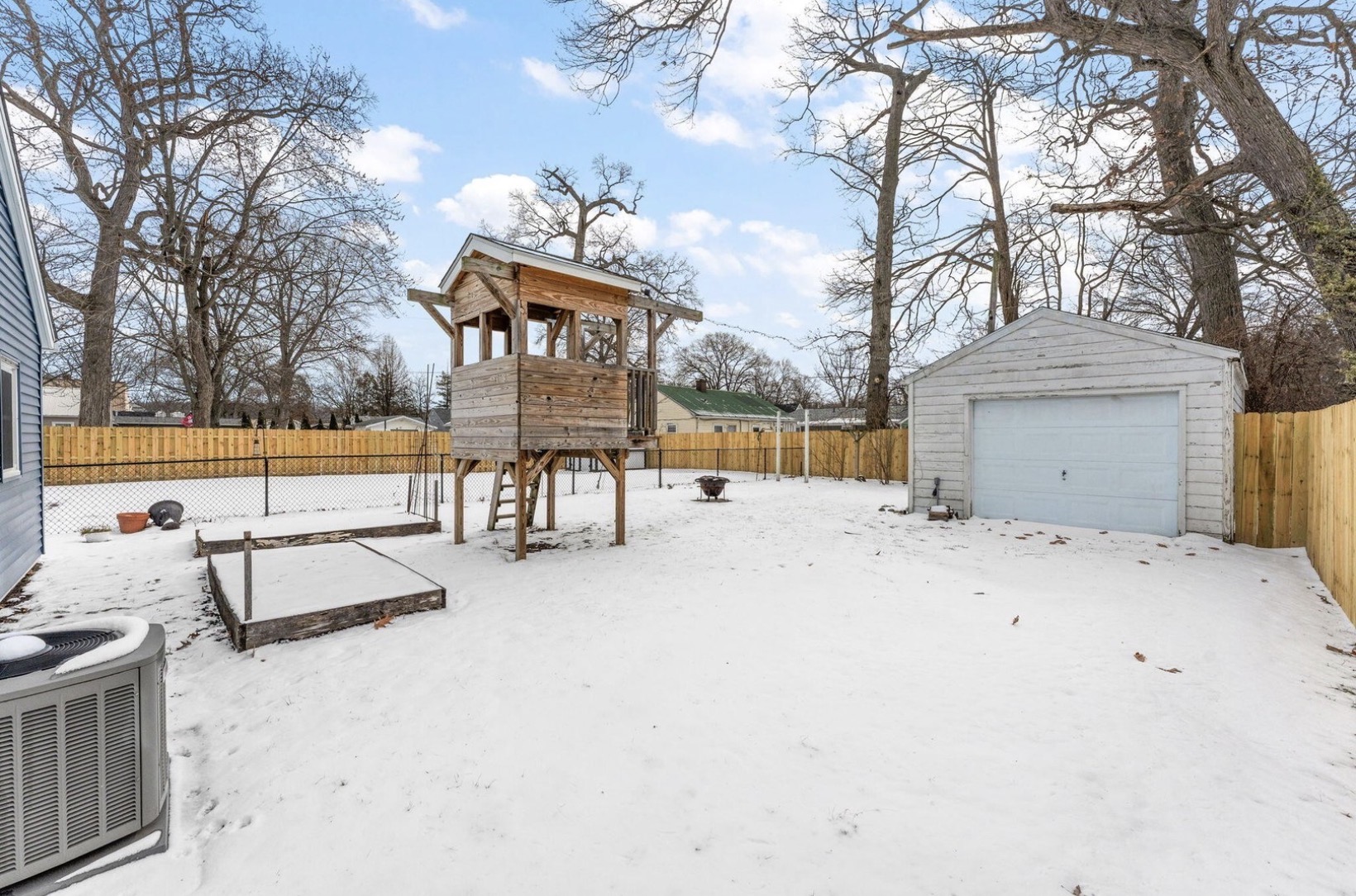 This cozy 3 Bed, 1 Bath ranch offers move-in ready comfort with everything conveniently located on the main level and situated on a slab foundation for low-maintenance living. Step inside to find a functional layout perfect for everyday living. All appliances are included, making this home truly turnkey from day one. Major mechanical updates provide peace of mind, including a newer HVAC system (furnace and A/C both installed and annually maintained since 2016) and a brand-new roof completed in 2024. Low-maintenance vinyl siding, plus newly installed sewer and water lines, add even more long-term confidence. Freshly painted and updated flooring throughout. Outdoor living is just as appealing. A front concrete patio is already poured and ready for your future covered entry design. Backyard features new fencing for privacy, a play fort that stays with the property, and space to relax and entertain. The detached 1-car garage includes its own electric sub-panel - ideal for hobbies, projects, or extra storage. Home attic has additional proper built-in storage for more room to store all of your seasonal decor. With park views right outside your door, this home delivers comfort, convenience, peace of mind, and lasting value in a central location.
