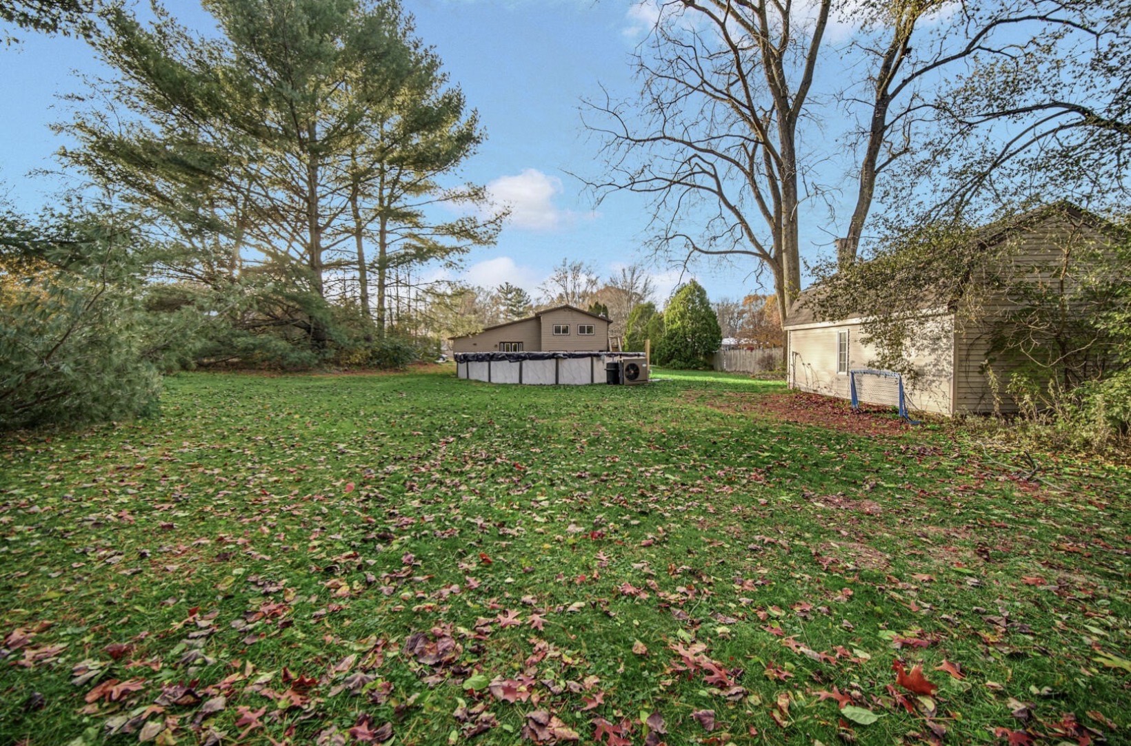 Welcome to Shiva Estates, where modern comfort meets resort-style living in this beautifully updated tri-level home in Michigan City, set on nearly 0.78 acres of scenic, wooded land. The main level offers bright, open living spaces enhanced by new lighting fixtures throughout. The kitchen flows effortlessly into the dining area with direct patio access, making indoor-outdoor entertaining seamless. The spacious living room features elegant tray ceiling details, creating a warm and inviting atmosphere. Upstairs, the primary suite feels like a private spa retreat, complete with a dedicated indoor relaxation room and a fully functional six-person hot tub. Three additional bedrooms provide flexibility for family living, guests, or a home office. Step outside to enjoy summer living at its finest with a newly installed 30’ heated above-ground pool (2025), a relaxing patio, and a landscaped backyard surrounded by peaceful wooded views—perfect for entertaining, play, or future expansion. The lower-level family and recreation room with wet bar offers endless possibilities for movie nights, game days, or hosting gatherings. With 4 bedrooms, 3 bathrooms, approximately 2,340 square feet, and an attached 2-car garage, this home delivers the perfect balance of style, space, and lifestyle amenities. This is more than a home—it’s a personal retreat designed for everyday living and unforgettable entertaining.