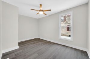 Upstairs, you’ll find two spacious bedrooms featuring beautiful hardwood floors, ample closet space,